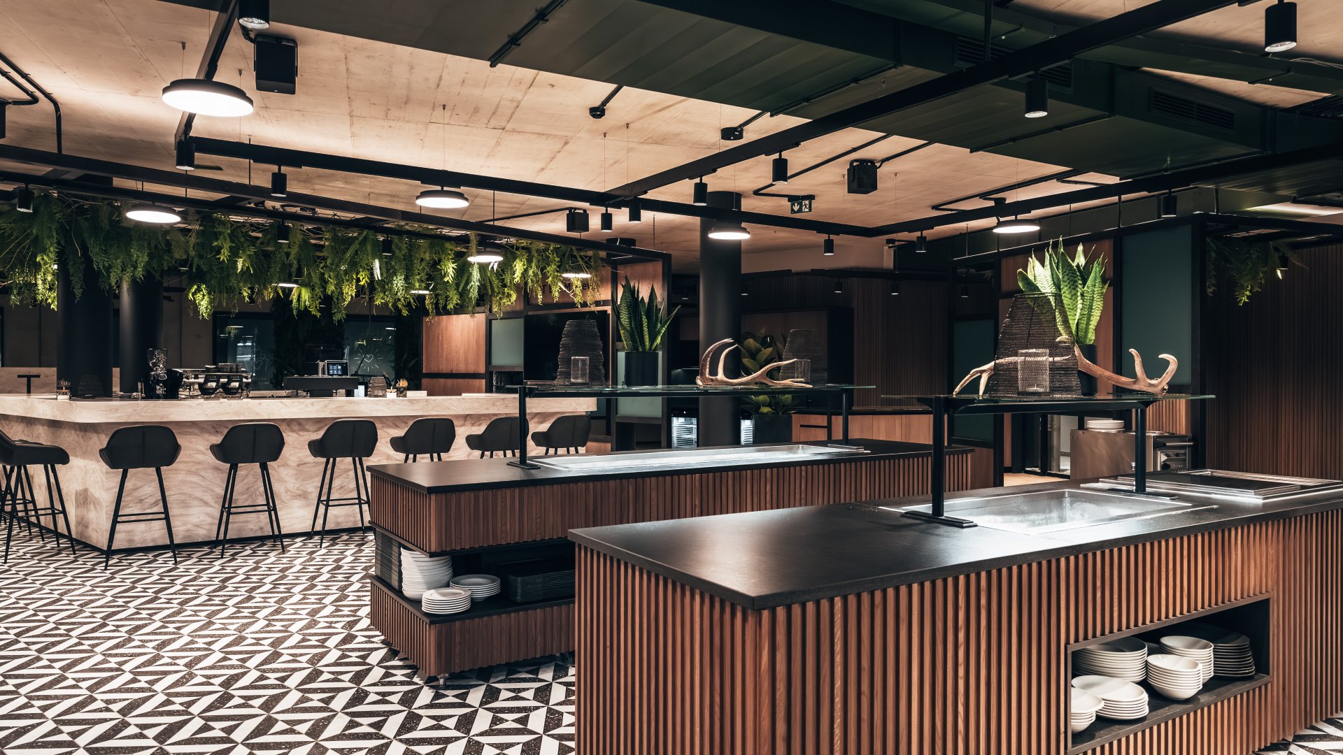 Die neuen lichtdurchfluteten Räumlichkeiten, gestaltet mit viel Liebe zum Detail von Christina Schmuck, umgeben von hochwertigen Materialien – der neue „Place to be“ für unsere Mitarbeiter. Große Tische laden ein für gemeinsamen Pausen, zum Austausch und zur Entspannung. Dies ist der Ort, an dem Ideen wachsen und Teamgeist gefördert wird. Ein Ort des Miteinanders und des inspirierenden Zusammenseins - willkommen im neuen Team Restaurant!