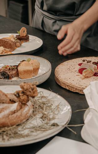 As part of Team Forsthofgut, you have three free meals a day at your disposal. Even on days off, you enjoy breakfast, lunch, and dinner with a choice of a wide variety of delicacies. Salads, main courses, and desserts ensure a balanced diet and enough energy for the day.